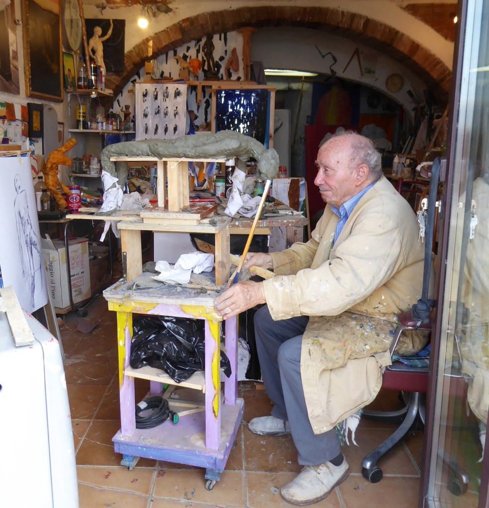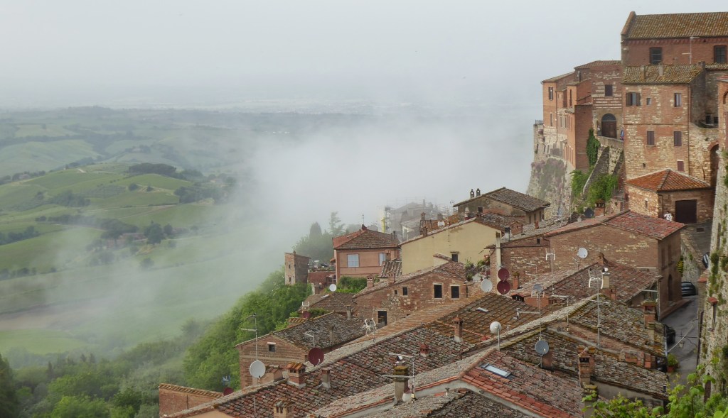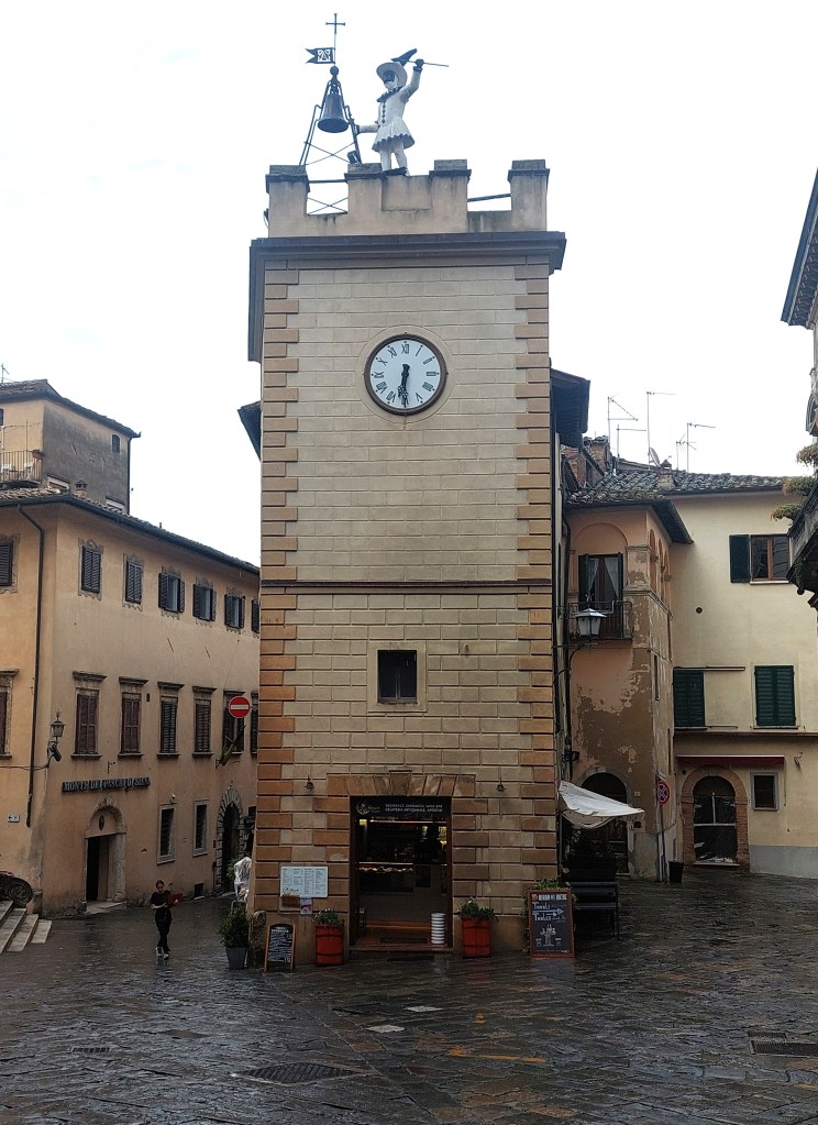 It’s the highest of the hill towns and with lovely views of the surrounding countryside from various vantage points from the town wall. We passed by the church of Sant’Agostino and the mysterious 17th century Torre di Pulcinella. No one really knows why the tower is adorned with a Neapolitan puppet statue that strikes a bell on the hour in the heart of Tuscany.