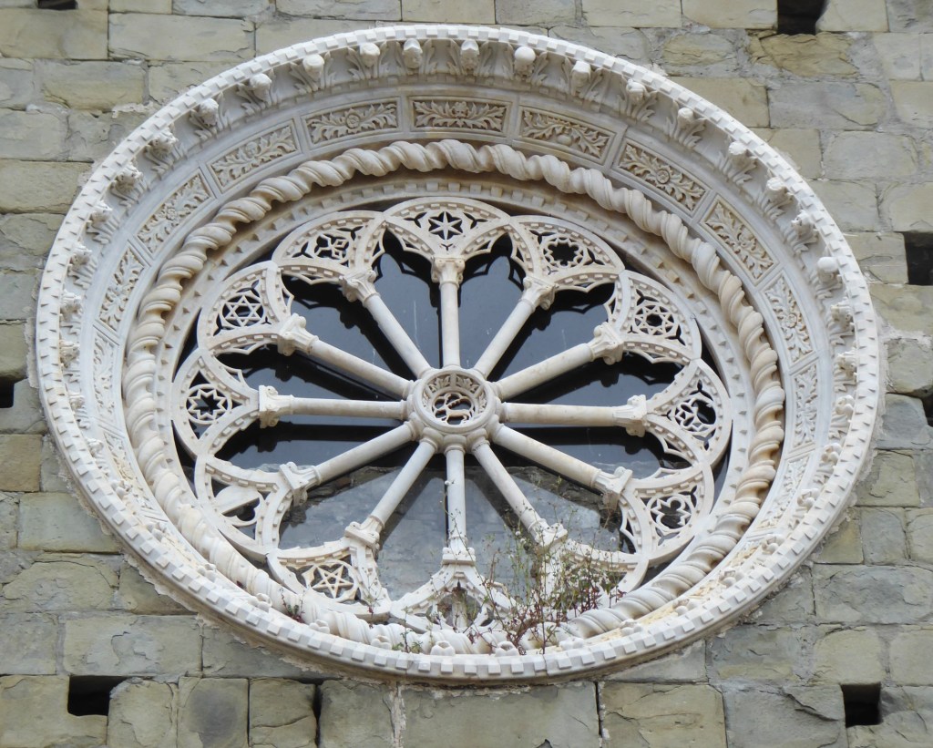 Our final destination was Corniglia. This had a completely different feel to the other villages and is the only one without its own port although there is a small beach down some steep steps. It was a half hour walk to Corniglia in the mountains along the road from from the station. It was a pleasant place to wander and grab an ice cream and visit the 14th Century Church of San Pietro which is well known for its exquisite round marble window.