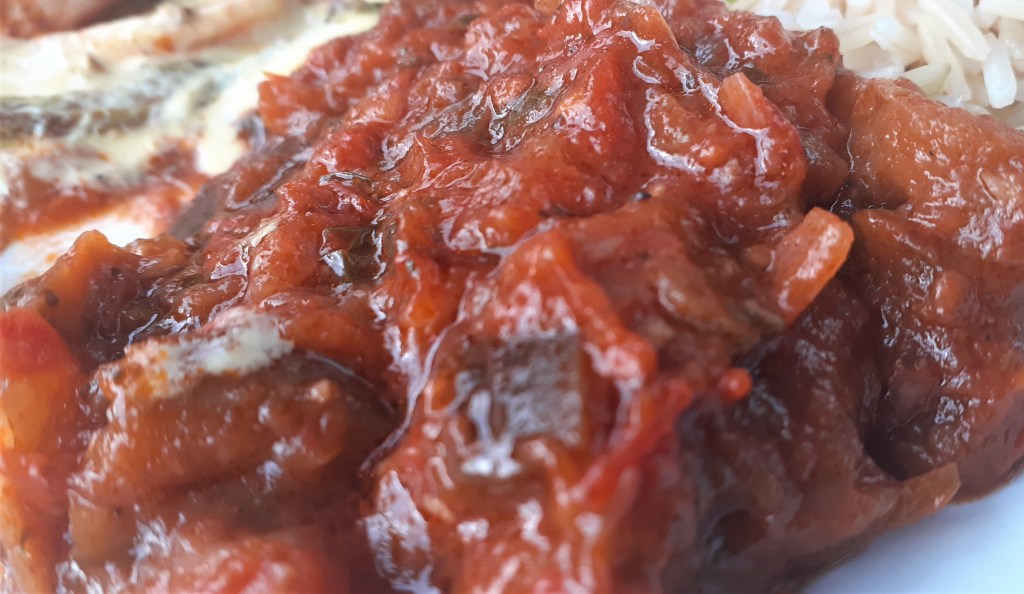 The classic Turkish derived dish Greek Imam Bayildi is traditionally an aubergine stuffed with tomatoes and onions. When I was in Stoupa I was offered a version that was a stew and it was delicious. So this is my version. You can serve it with rice as a main course or as a side dish with anything!